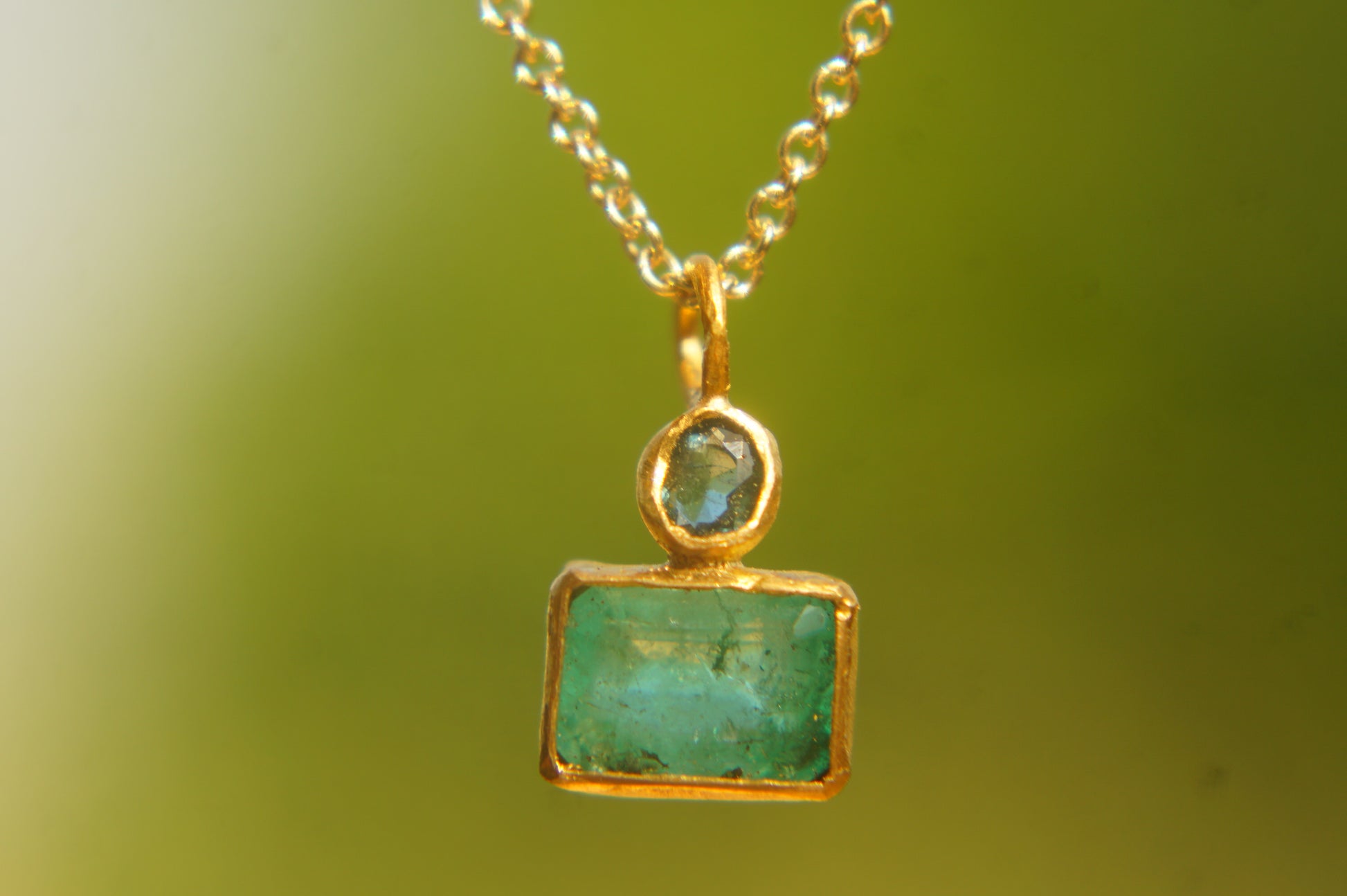 22 Kt Israeli Designed Emerald and Sapphire Pendant