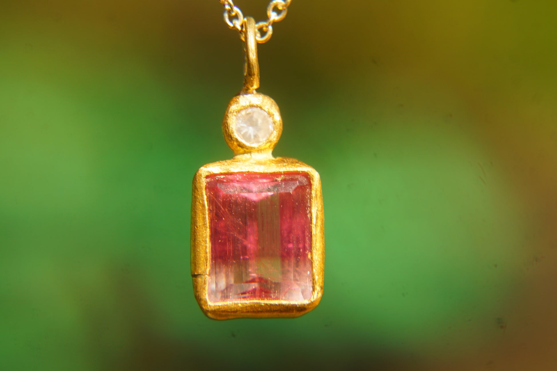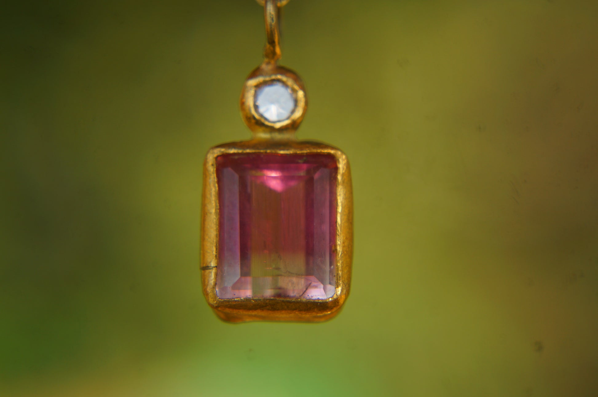 22 Kt Israeli Designed Pink Bi Color Tourmaline Pendant