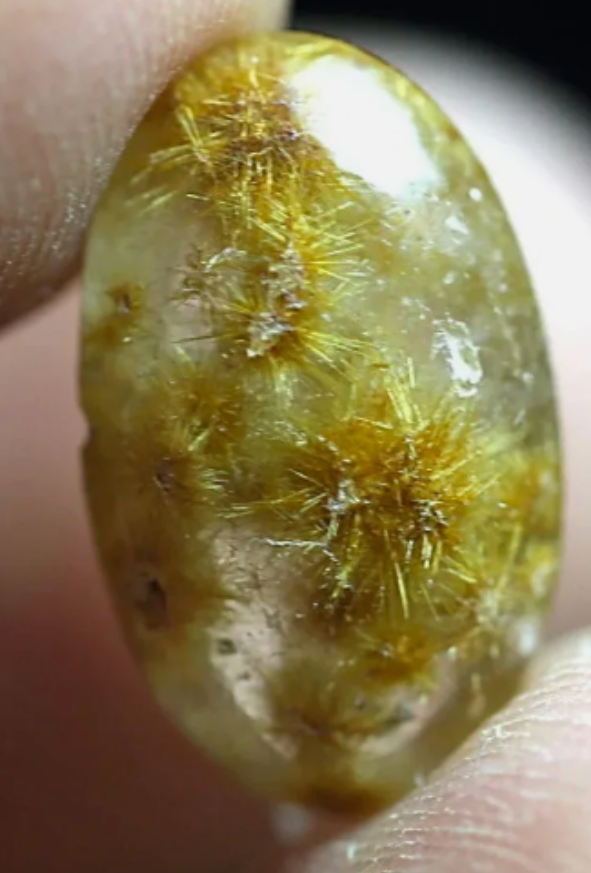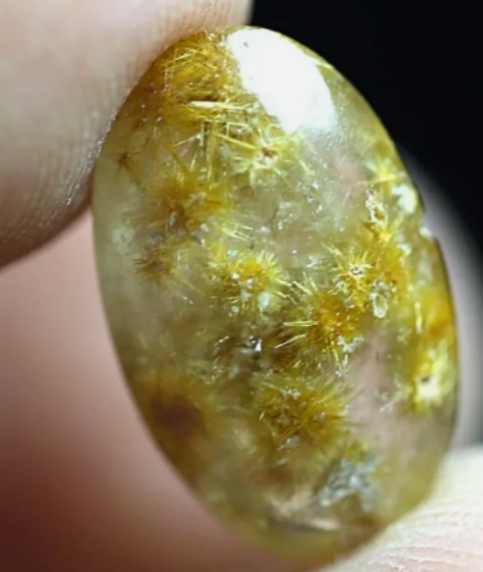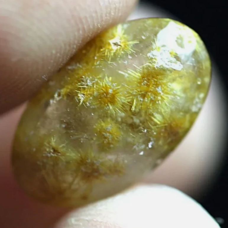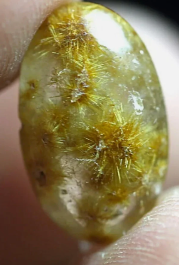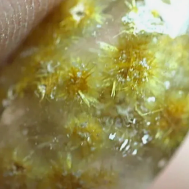 4.9 cts Glittering Golden Rutilated GOETHITE Burrs in Crystal Clear Quartz. Flat Backed Cab.