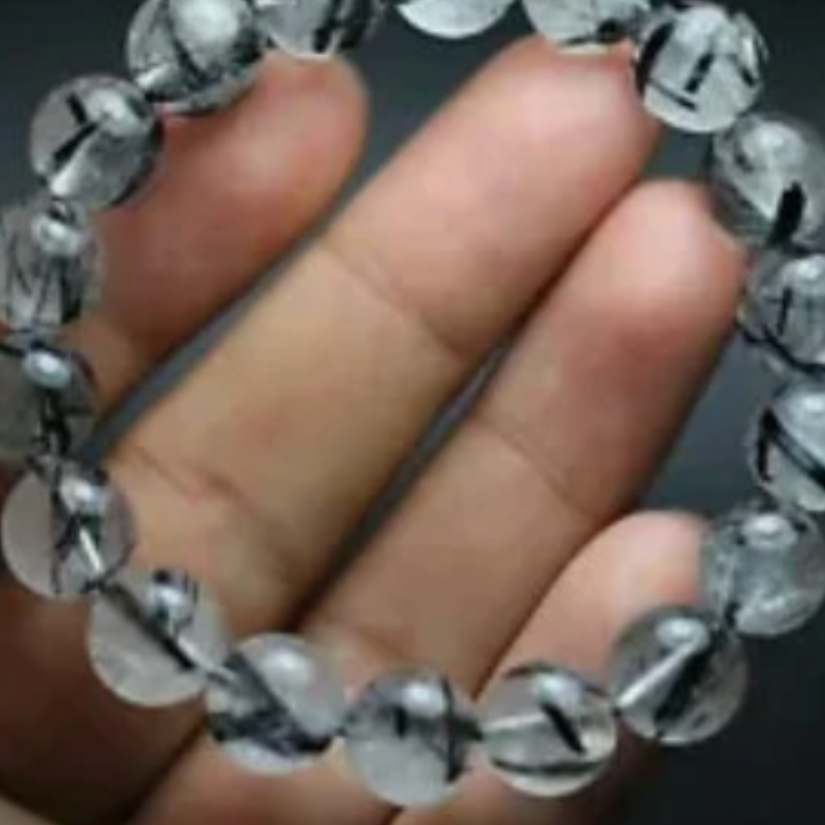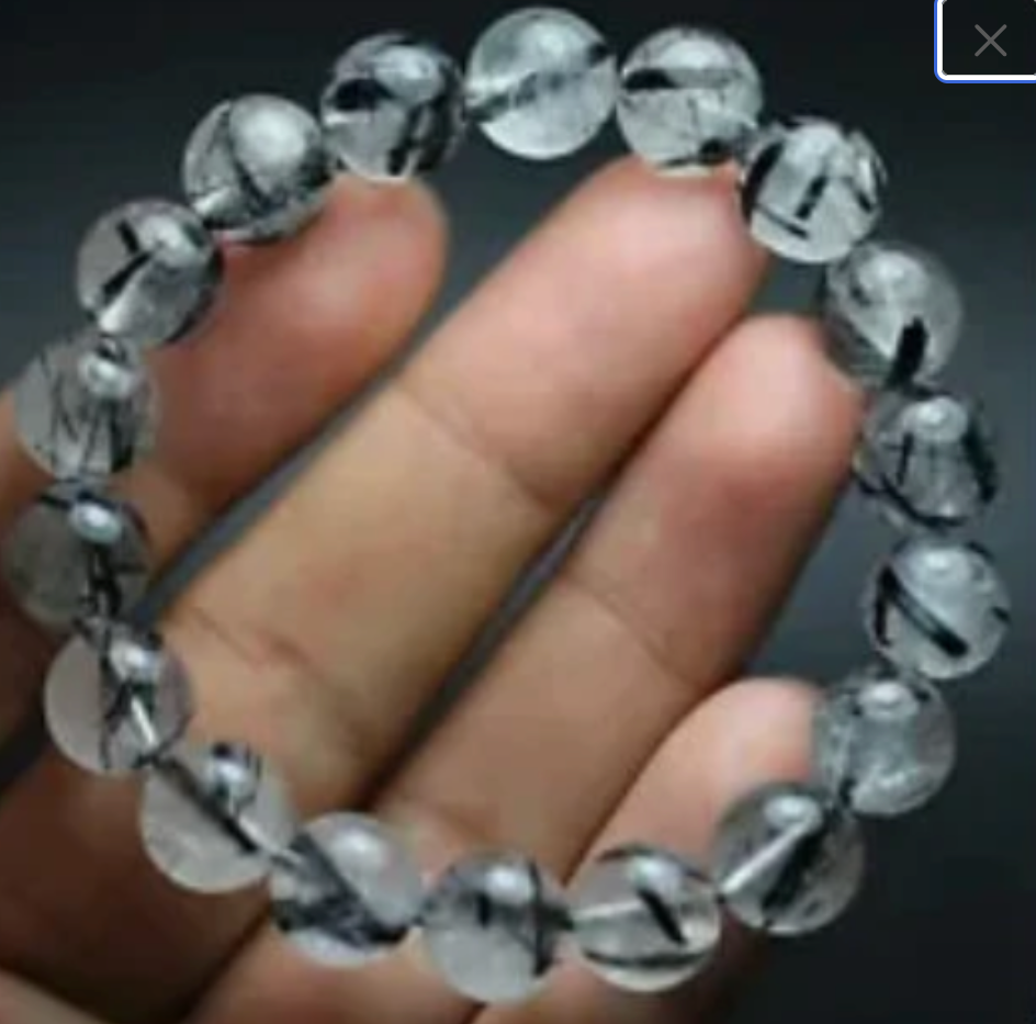 All-Natural, Suspended Black Tourmaline Rutile Inclusions In Quartz, Beaded Bracelet. 5137