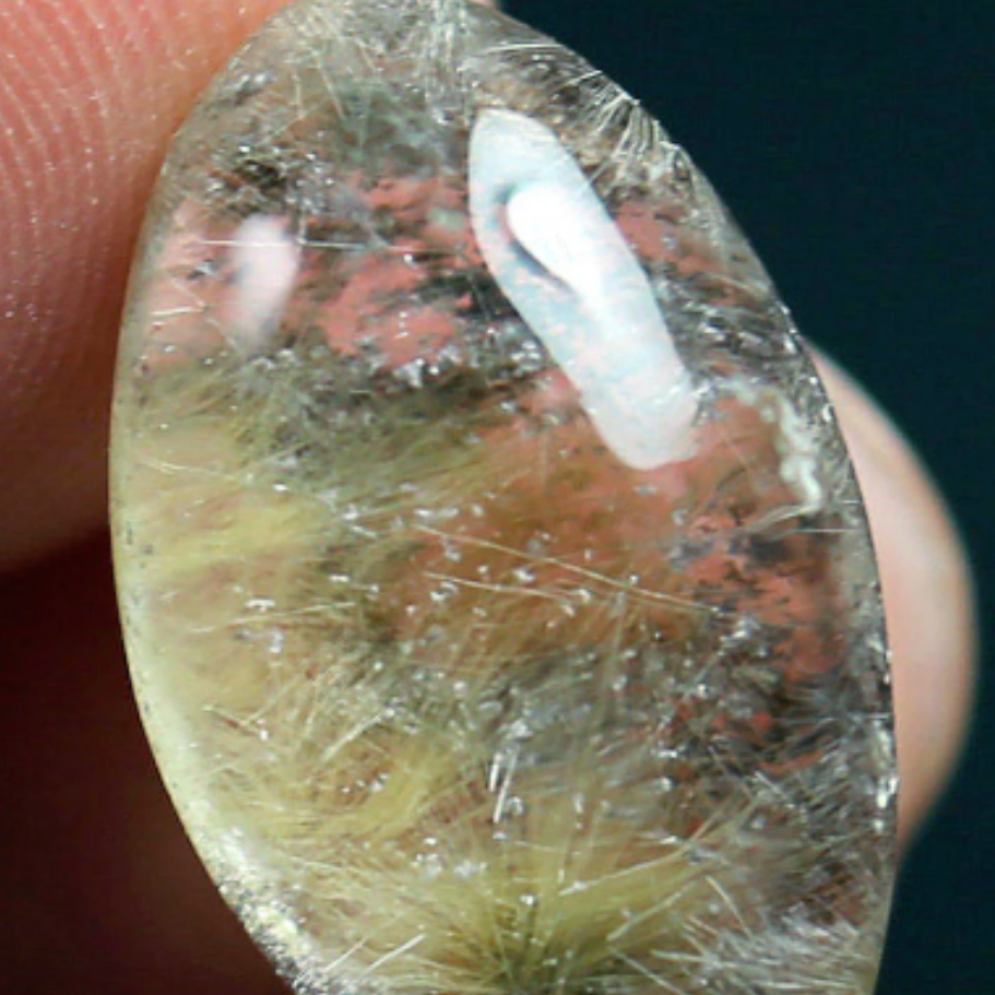 13.8 cts Very Soft Golden Rutiles in Water Clear Quartz. Flat Backed Cab. 9086