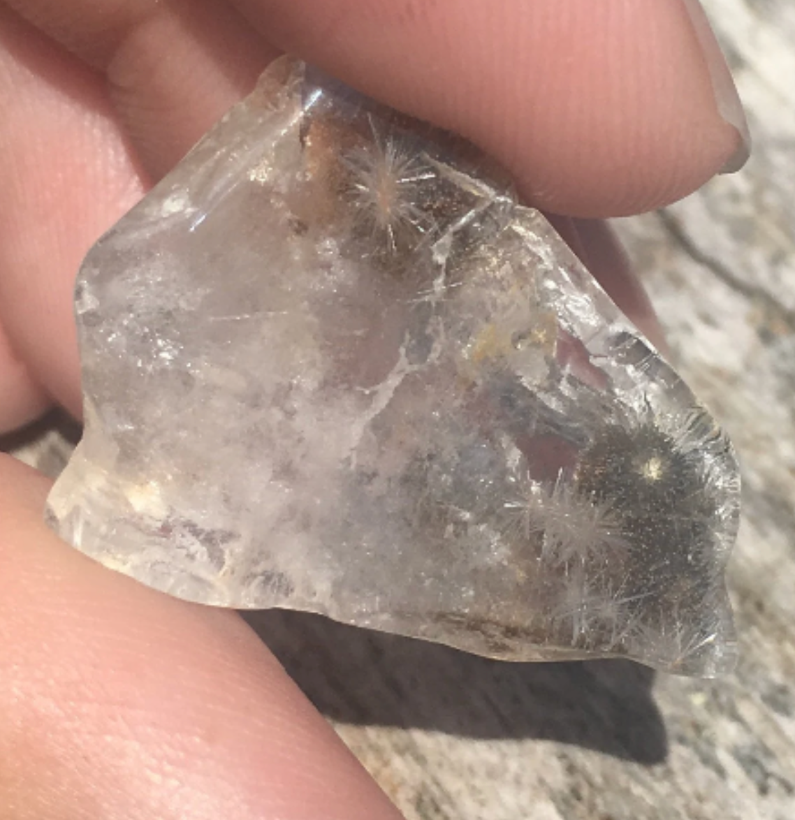 More on this kind of stone at: http://betweenarockandaheartyplace.blogspot.com/2015/02/quartz-with-dumortierite-inclusions.html
