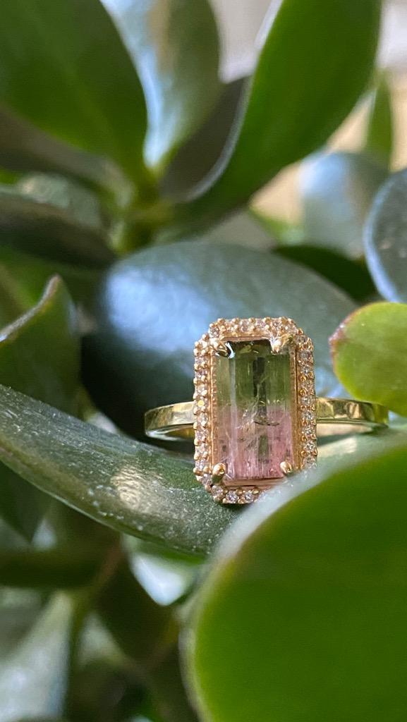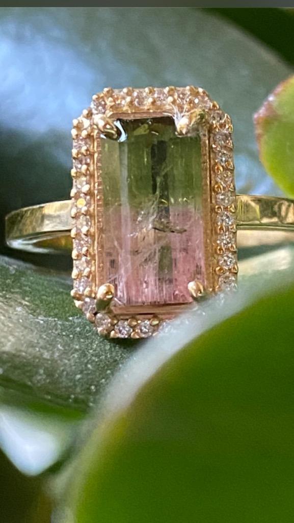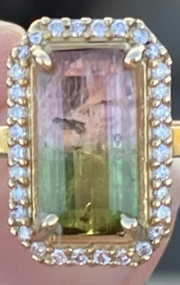 Genuine Bi Color Tourmaline and Diamond Engagement Ring.