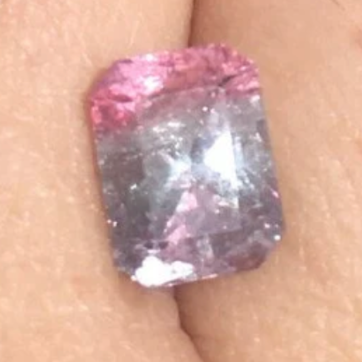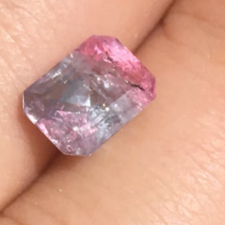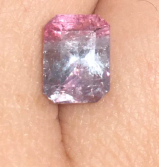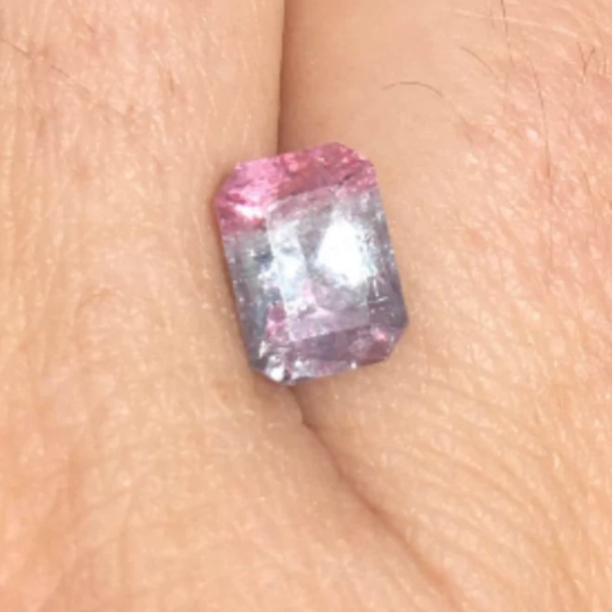 Earth-Mined, All Natural Faceted, Emerald Cut, Bi-color Pink & Purple Tourmaline Loose Gemstone From Afghanistan